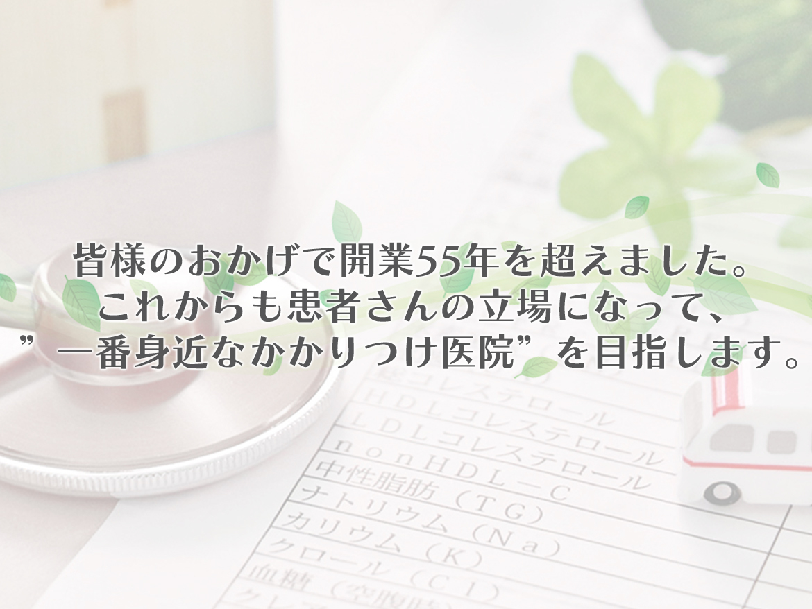 地域の皆さんが安心して暮らせるように、体調を気軽に相談できる、かかりつけ医として患者さんの健康をサポートいたします。