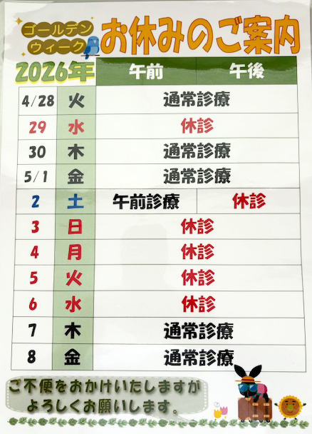 ■2026/4/14 ゴールデンウィーク休診のお知らせ